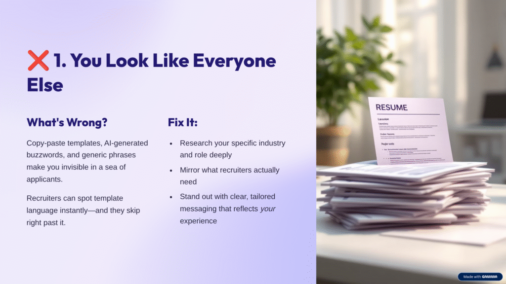 Why it hurts: You blend in. You don’t stand out. You become “just another applicant.”