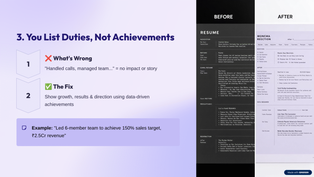 3️⃣ You’re Listing Duties — Not Telling Your Career Story