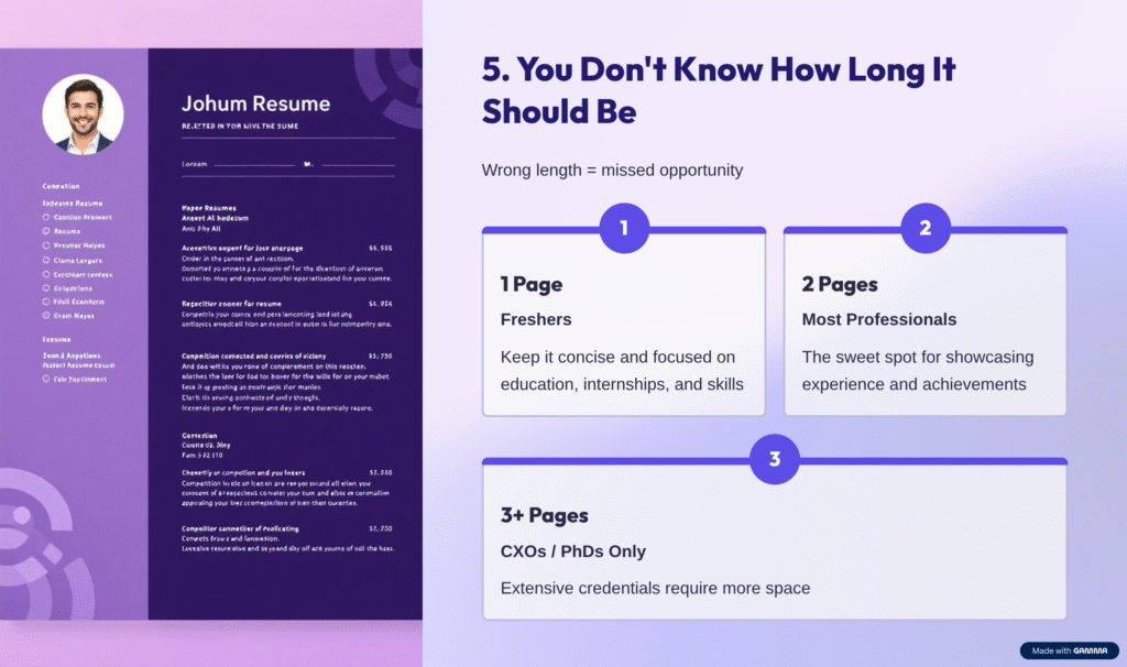 🎯 Bottom Line: Two pages is the sweet spot for most professionals. Too short = underqualified. Too long = unreadable.
